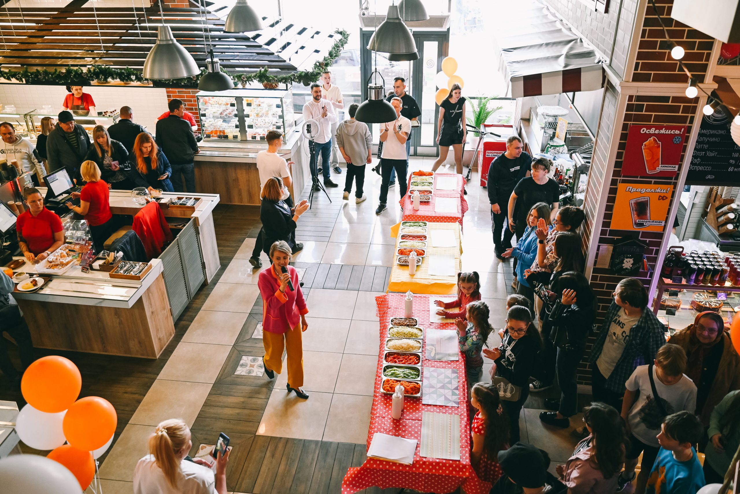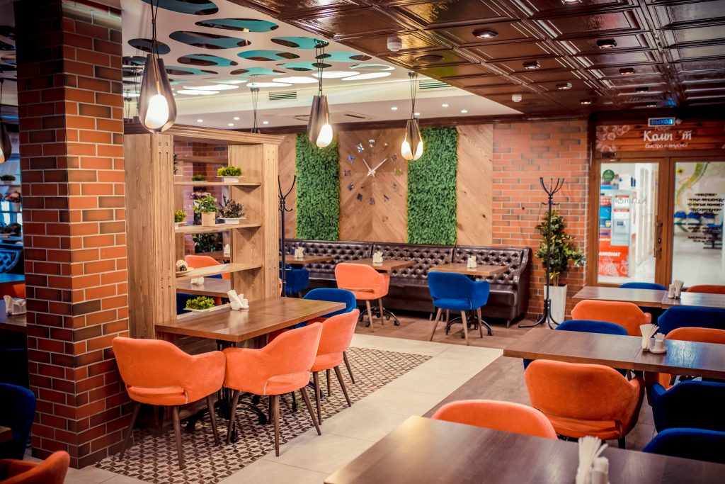 Стильные кафе быстрого питания «Компот» имеют несколько просторных и атмосферных залов, в которых можно не только ВКУСНО, БЫСТРО И ДОСТУПНО поесть, но и отметить яркое торжество: от свадебного банкета до небольшого семейного праздника!
