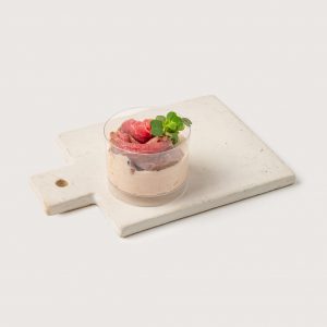 Ванильный бисквит, сметанный мусс, клубничная прослойка