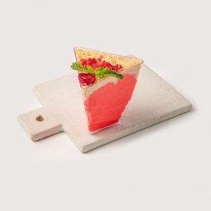 Бисквит фисташковый, мусс фисташковый, начинка клубничная