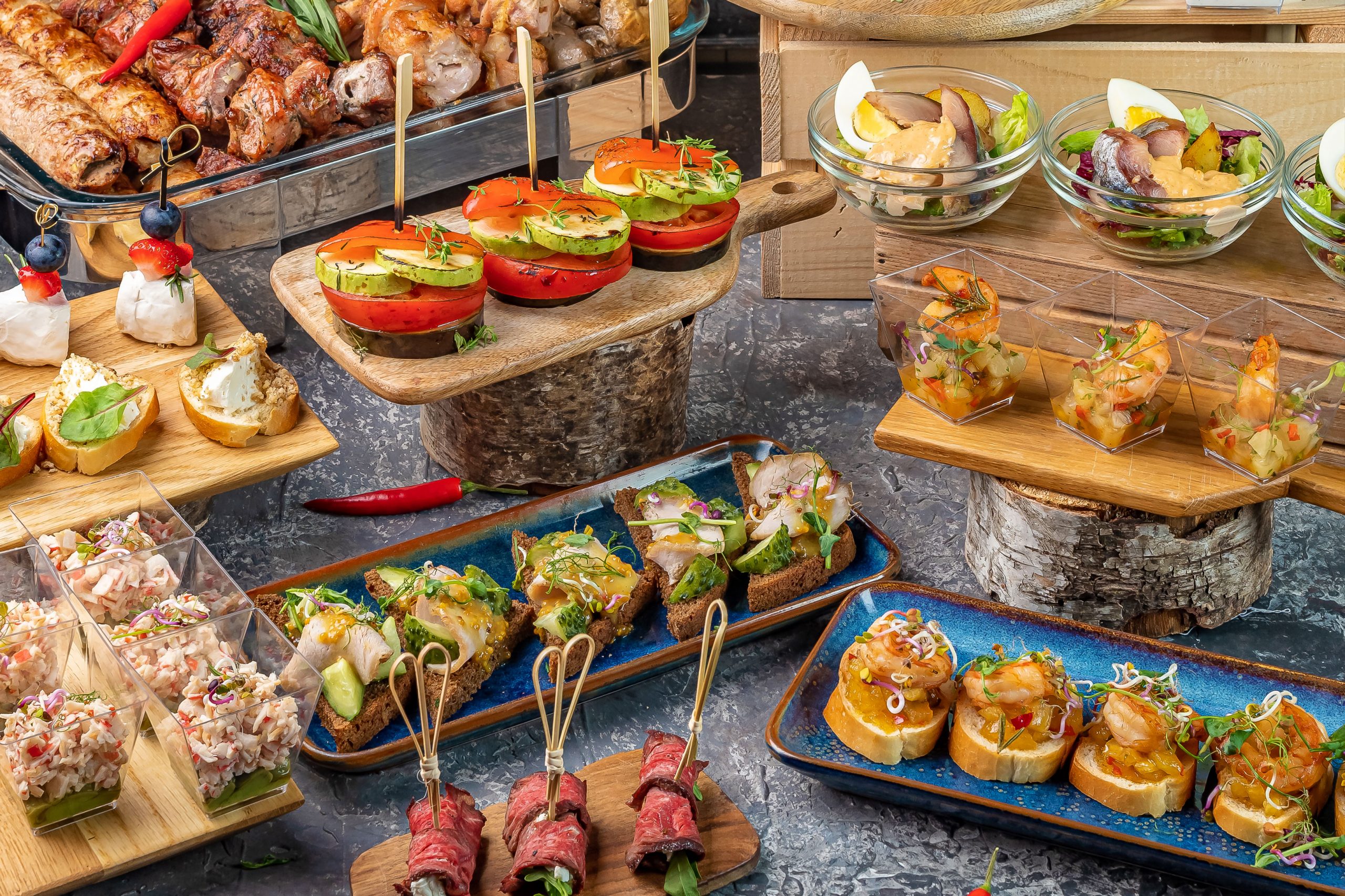 Более 50 закусок и готовых наборов как в новом, так и в классическом исполнении под любое мероприятие.